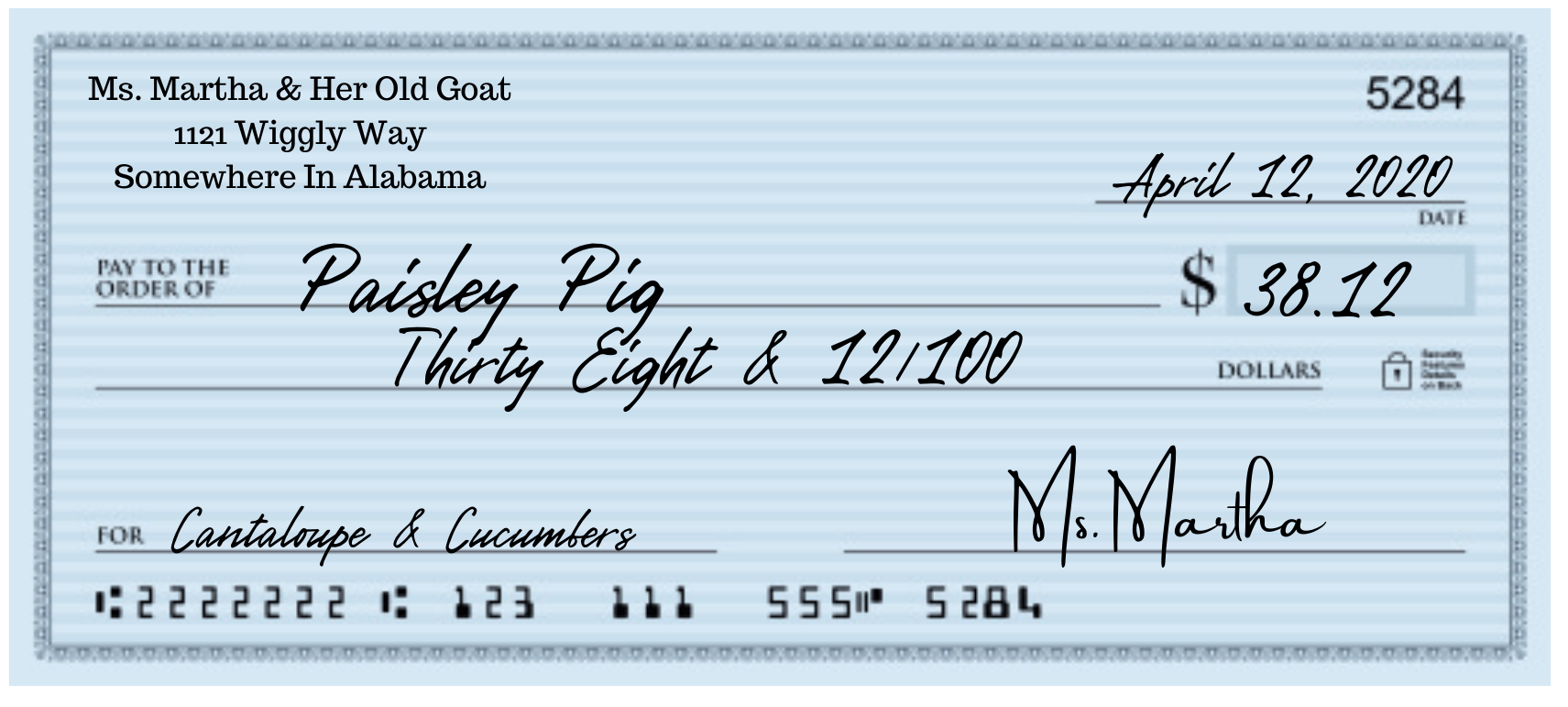Ms. Martha is the last of my customers that still writes a check.  She refuses to use a debit or credit card and says she cannot spend her cash because that’s her “mad money”.  Trying not to laugh, I asked her why she needs mad money…